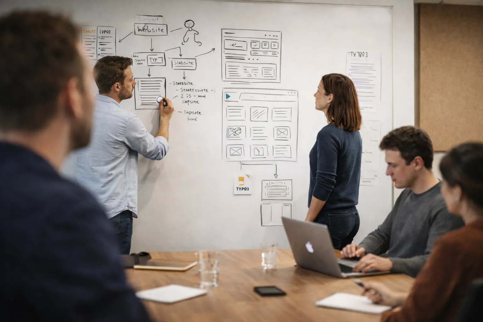 Damit der Wechsel reibungslos gelingt, setzen wir auf ein klares Vorgehen: Konzeption, Design, TYPO3-Umsetzung, Inhaltsmigration und einen sauberen Go-live-Prozess.